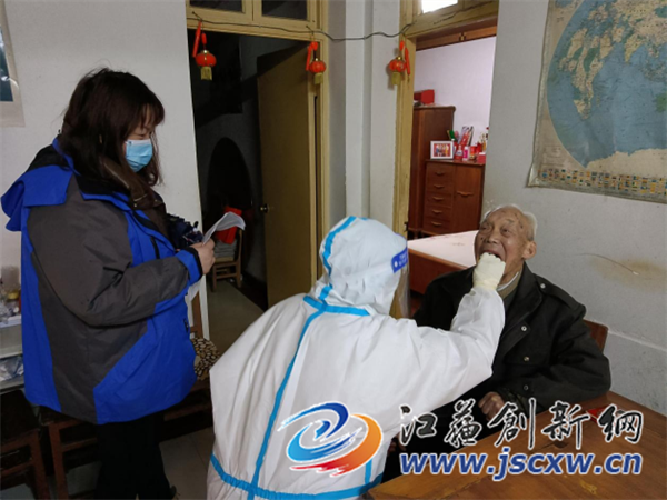 “您好,我们是上门来为您做核酸采样的。”为从严从紧从细做好疫情防控工作,确保全员核酸检测“不漏一户、不漏一人”,崇明街道为辖区特殊困难残疾人、社区高龄老人等群体提供入户核酸采集、防护宣传等人性化温情服务,打通核酸筛查的“最后一公里”。每到一户,社区工作者及医护人员都会耐心安抚,一边细心指导他们张开嘴,一边小心地为他们进行采样,尽量减少他们的不适感,并叮嘱家属,疫情期间一定要做好防护,减少外出,居家常消毒,勤洗手,外出戴口罩,做好疫情防控措施。