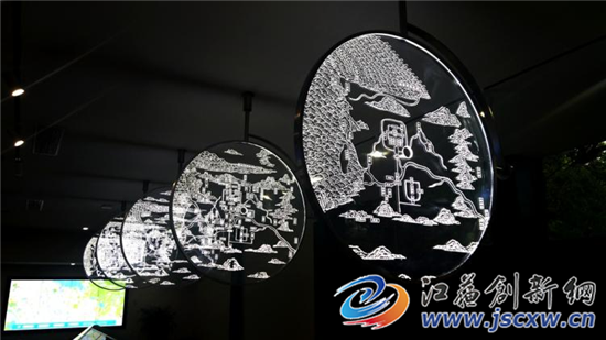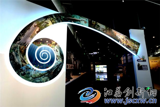 走进主馆大厅,一个DNA双螺旋设计的艺术构件悬挂于正中。这个由南京艺术学院张明教授设计的艺术品,铭刻了南京历史上的曾用名金陵、秣陵、建康……构件之间还刻印着从结绳到0101二进制数字演进的文码符号,画面首尾相连,象征着南京城市的文脉生生不息。
