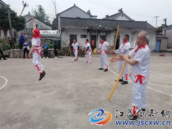 江苏创新网讯 “五一”小长假期间,每天傍晚时分,在镇江丹徒区宝堰镇坞村,一种翻转抛接兵器、观赏性极强的民俗舞蹈——“镗舞”表演,让围观的村民们大开眼界。原来,疫情防控期间,经过多名老年村民的潜心挖掘,曾与村里入选江苏省非物质文化遗产名录的“双推车”齐名,濒临失传的“镗舞”实现起死回生。