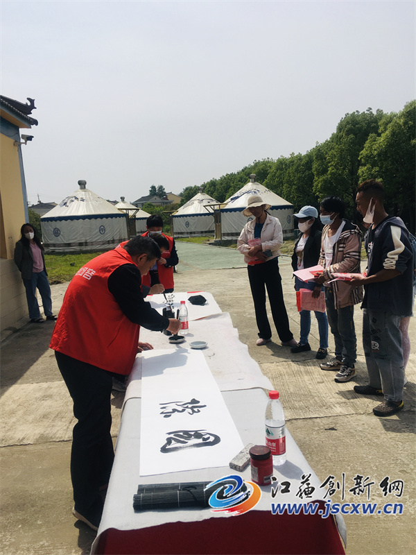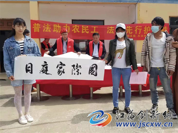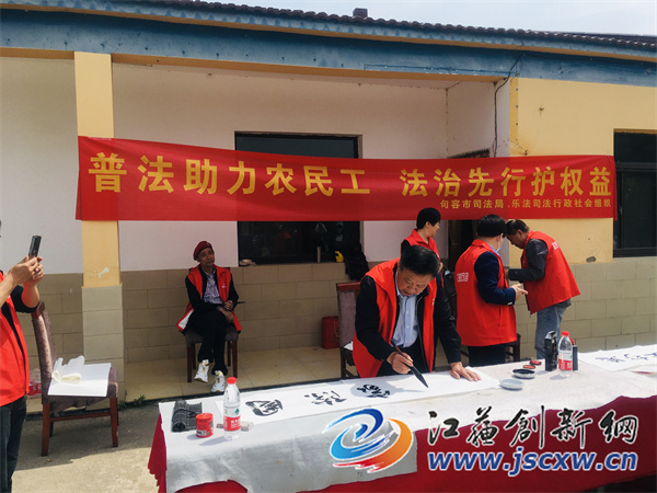 江苏创新网讯 今天是5.15国际家庭日,句容市司法局社会普法组织与老年书画协会公益团队一起来到鲲鹏山庄公益基地开展“美好生活·法典相伴”书法公益活动。山庄附近部分农民工家庭参与了学法及赠书画活动。