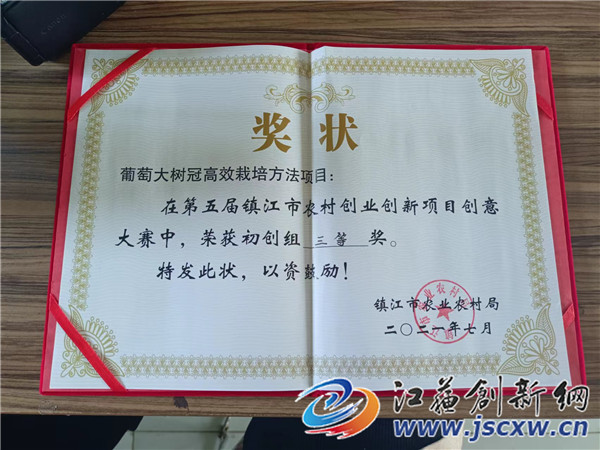 葡萄的品质提升了,岳建涛经营的葡萄园的口碑也变得越来越好。“去年受疫情影响,增加了邮政生鲜渠道,我们的葡萄销往北京、上海大城市以及周边地区,销售渠道主要以微信群、客户群等线上渠道为主,每年发出快递约两、三千箱。”岳建涛说。葡萄一挂果,就被来自南京、上海以及周边地区的客户抢空。他还通过邮寄的方式销售,销往更远的海南、黑龙江、宁夏等地,年收入也在逐步稳定。岳建涛的“葡萄平架大树冠栽培高效新模式”入选2021年镇江市大学生优秀创业项目和2020年省级大学生优秀创业项目。