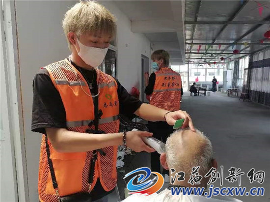 作为义务理发志愿者之一的理发师傅丁玲说,他和几个朋友在丹阳市区开了一家理发店,前几天,他们的店内来了一个村民理发,这个村民透露了自己一个高龄的伯父在丹阳大吕为民养老院入住,头发长了理发不方便,和他伯父一样情况的还有一些老人。说者无意听者有心。丁玲与同事们一商量,决定择日带着工具到养老院义务为老人们理发。前一天,他们与养老院的负责人联系好,于5月23日上午,5名理发师准时带着工具来到丹阳大吕为民养老院,为30多名入住老人理发和修发,老人们接受服务后,一个个都感觉非常惬意和开心,很感谢养老院和理发师们。