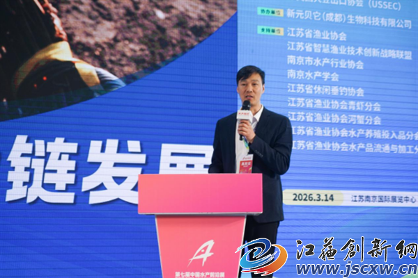 江苏创新网讯 3月14日上午,由水产前沿主办,水产前沿展联合主办,美国大豆协会(USSEC)战略合作,新元贝它(成都)生物科技有限公司协办,江苏省渔业协会、江苏省智慧渔业技术创新联盟、南京市水产行业协会、南京市水产学会、江苏省休闲垂钓协会、江苏省渔业协会青虾分会、江苏省渔业协会河蟹分会、江苏省渔业协会水产养殖投入品分会、江苏省渔业协会水产品流通与加工分会共同支持的第七届中国水产前沿展在南京国际展览中心盛大开幕。