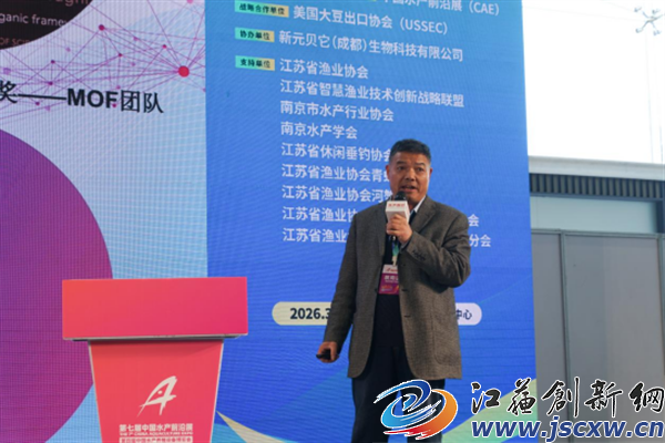 下午“2026水产养殖高质量发展大会”由江苏农牧科技职业学院现代渔业学院院长王权主持。江苏省淡水水产研究所葛家春研究员、新元贝它(成都)生物科技有限公司营销总监庄宏博士、浙江省淡水水产研究所所长张海琪、南京农业大学教授陈光明分别以“河蟹新品种选育及绿色健康养殖技术推广”“新型高纯度B-葡聚糖在水产健康养殖中的应用”“罗氏沼虾‘太湖3号’新品种选育及养殖技术要点”“改性复合氧化物纳米材料在水产养殖设备领域创新应用”为主题做专题报告。