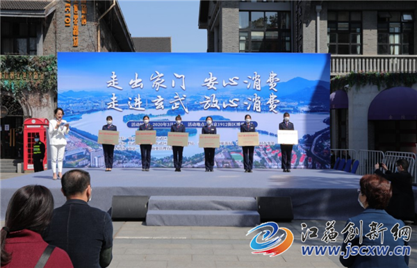 为进一步激活消费市场,提振消费信心,3月15日玄武区委、区政府隆重举行2020“走出家门,安心消费 走进玄武,放心消费”3.15主题活动。本次活动的目的是创造安全放心的消费环境,通过线上线下同步发力,有效促进消费回补和潜力释放,引导广大市民在做好防护的前提下,逐步恢复正常秩序、享受城市美好生活。玄武区委副书记、区长钱维、玄武区委常委、常务副区长赵小华、玄武区副区长马千山、玄武区一级调研员、市场监督管理局局长顾建华、1912集团总裁罗英、紫金农商行城中支行行长武自强及相关单位和企业参加。
