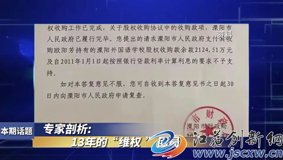 程轶侠记者:主持人好,观众朋友们好,近日,溧阳市政府与欧阳女士之间的股权转让纠纷引起了社会各界的广泛关注。