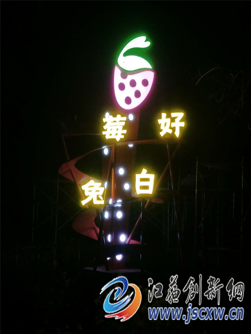 为此5座草莓景观形象由专业的设计团队精心设计,不仅融入了形态各异的草莓元素,还突出了公共品牌“莓好白兔”这一核心表达。位于东部干线与S122省道交汇处和草莓公园停车场处的两处形象标识“首尾呼应”,让游客在进出草莓采摘园区都能看到醒目的标识。景观标识底座均以质朴的河石堆砌,田园风情扑面而来,“莓好白兔”四个艺术字体经过巧妙雕琢,与该镇蕴含的文化味和现代感契合一体,与多彩的字母组合充分体现了白兔人民的热情,吸引着八方游客。5座风格统一,造型各异的景观标识为游客指明了采摘方向,也增强了公共品牌的宣传力。其中有4组还增加了夜景灯光效果,既提升了该镇农业产业示范园区的景观形象,也成为了该镇夜晚一道道靓丽的风景线。