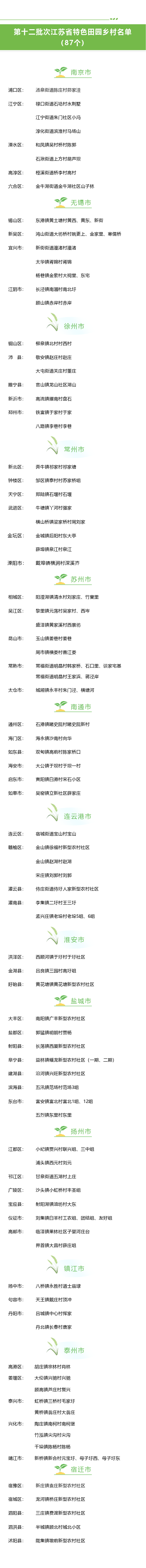 至此,江苏省特色田园乡村数量已达752个,其中2023年度命名159个,超额完成省政府民生实事提出的“创建130个省级特色田园乡村”的目标任务,完成率122.3%。76个涉农县(市、区)中,省级特色田园乡村数量达10个及以上的有34个,占44.7% 。