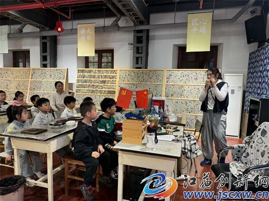 活动现场,幼儿园老师和街道理论宣讲青骑兵以经典的小故事为引,向孩子们讲述了活字印刷术的起源、发展历程以及具体制作流程。