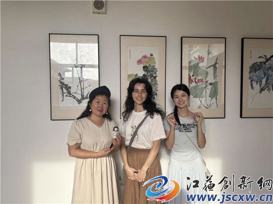 江苏创新网讯 2025年6月26日 江苏第二师范学院溧水校区内,来自俄罗斯众多留学生现场向非遗传承人原卫妮学国画团扇,剪纸伞。