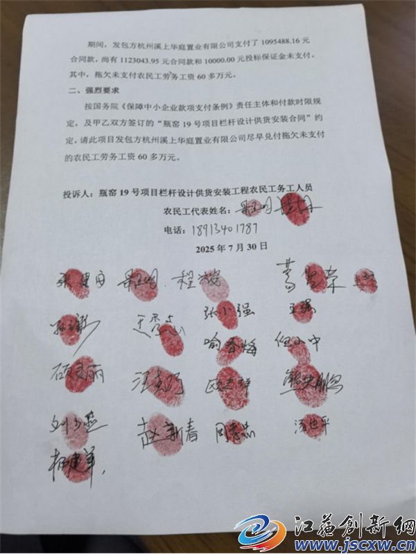 近期,数十名农民工及供应商前往当地劳动监察部门提交投诉材料。一名农民工哽咽称:“马上孩子上学等着交学费,现在连生活费都拿不出来,我们只能走这一步。”浙江华元华昭府项目方工作人员称“资金调配需按流程”,否认恶意拖欠,但至今未给出具体付款时间表。