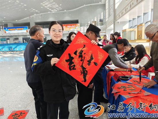 江苏创新网讯 一年一度的“笔走乾坤书法治 墨染旅途护平安”法治书法活动于2月4日在句容高铁站举行。乐法社会组织特邀句容市老年书画协会书法专家们现场创作以法治、铁路安全为主题的书法作品,如对联、福字、警句等将法治宣传与书法艺术相结合的文化推广活动。