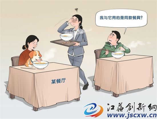 宠物口腔携带的致病菌以及其毛发、唾液可能造成的交叉污染,不仅不符合餐饮卫生相关规范,也违背了其他消费者的健康需求与心理感受。允许宠物直接登上餐桌、使用公共餐具,明显突破了公私界限,触及食品安全与公共文明的底线。不过,一味指责或简单禁止并非妥善之法。人与宠物在就餐场景中的矛盾,本质上是饲养宠物的个人自由与公共权益之间的界限界定不清。如何明确文明尺度、健全相关规则,使人与宠物在公共空间内和谐共处,仍需社会多方进一步探索。(新华日报 魏晓敏/文 曹一/图)