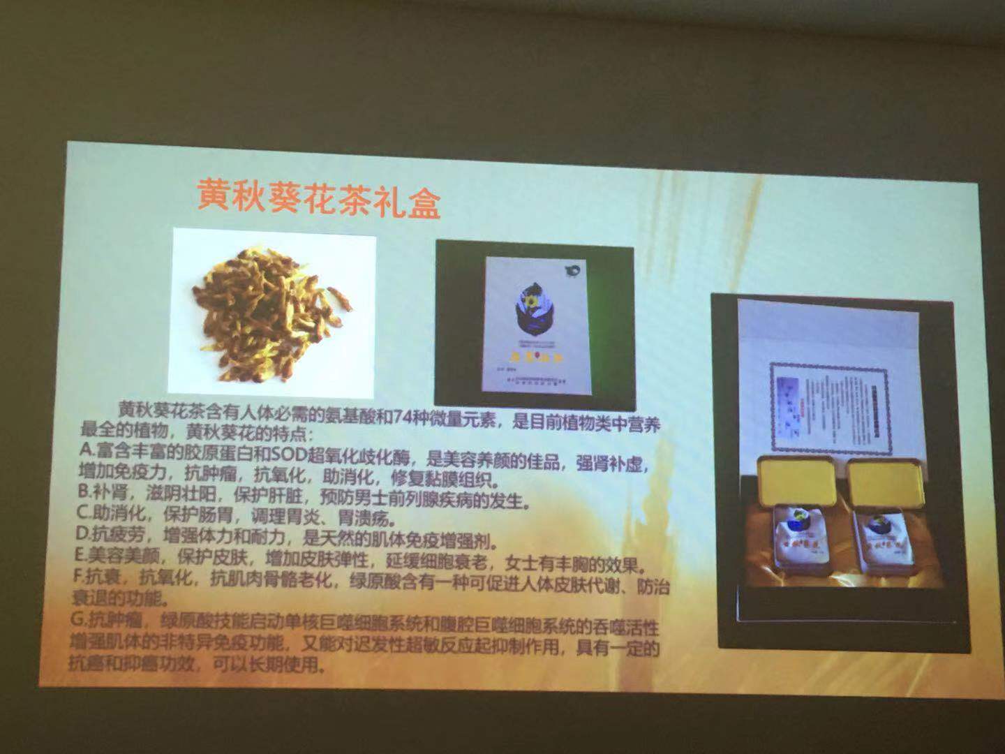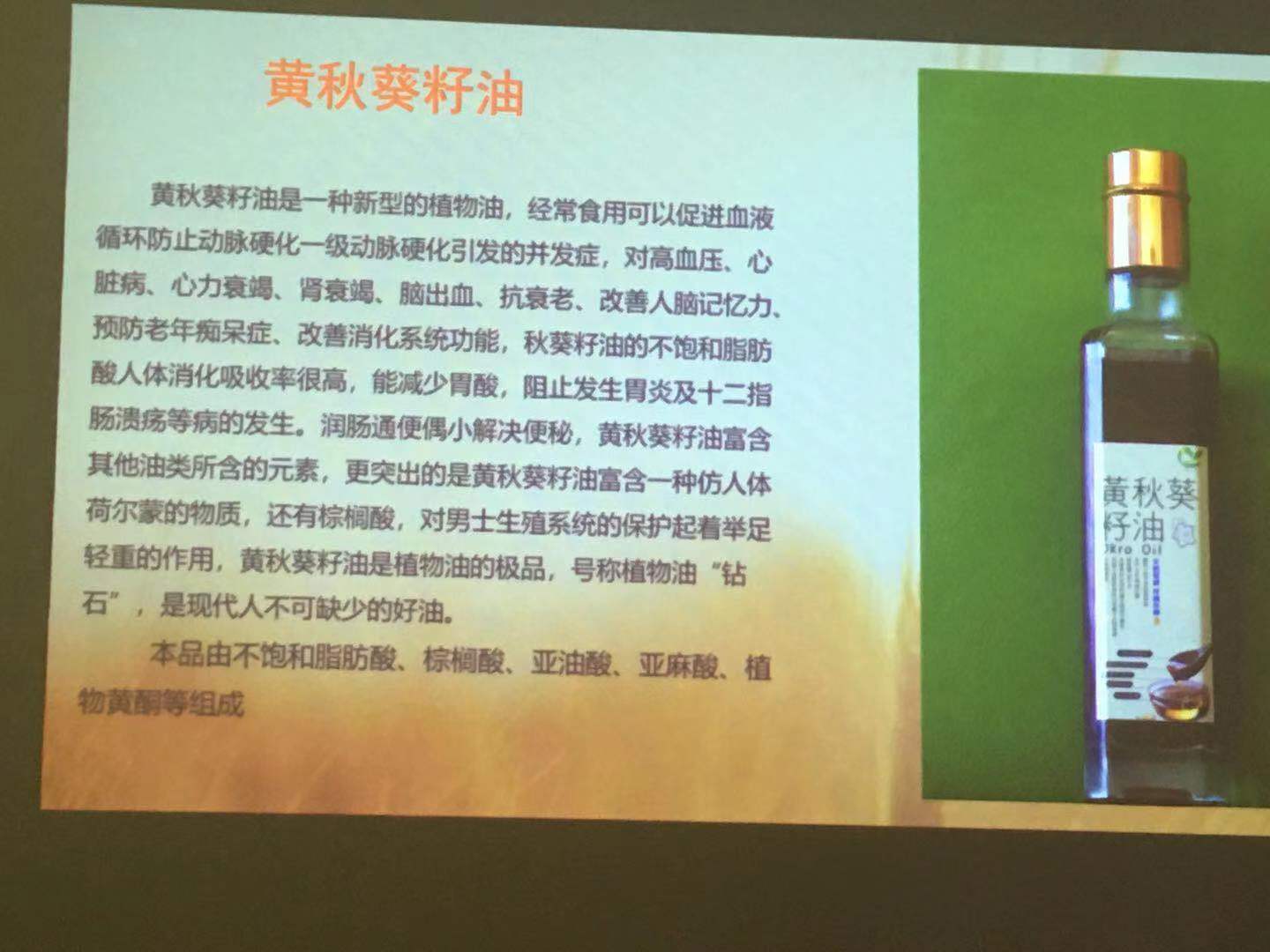 这场交流会主要目的就是让更多的人了解秋葵,介绍江苏晟虹秋葵科技有限公司研发生产的秋葵养生新品。如,秋葵臻品御养套装,功效是驱寒排毒,改善因肾虚引起的精神乏力。黄秋葵花茶,助消化,保护肠胃,抗疲劳,增强体力和免疫力。黄秋葵籽油,黄秋葵籽油是一种植物油,经常食用可以促进血液循环。秋葵水润修复面膜,修护锁水,层层透润肌底。秋葵脆,开袋即食,入口酥脆,营养美味,平衡日常膳食。(图文/ 魏荣霞 高飞)