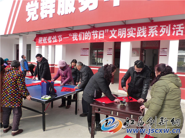 1月14日-15日,由句容市文体广电和旅游局主办 ,句容市文化馆组织句容市书法家和书法爱好者们不畏严寒走进白兔镇太平村、边城镇青山村、开发区黄梅街道等为居民送上新春祝福,现场书写了2000余幅春联。不少群众纷纷闻讯赶来活动现场,兴高采烈地排队等待领取春联和“福”字。一幅幅充满祝福、吉祥和期盼的对联,不仅彰显了书法家们深厚的书法功底,也符合传统对联的格律,传承了中华优秀传统文化,;还传递着文明和谐的新风尚,弘扬了时代精神,让现场群众们爱不释手。
