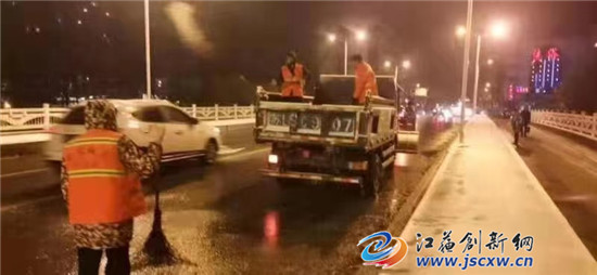 雪情即是命令。29日晚18时至21时,市环卫处紧急出动8辆作业车,100多名环卫工人采取人机结合的方式,对城区各主次干道、桥面、学校等重要路段进行清扫积雪和洒融雪剂作业,尽全力保证交通早高峰安全、畅通。截至29日21时已累计洒融雪剂8吨.据环卫处负责人介绍,市城管局环卫处已采取24小时值班制度,并组织各区域负责人检查扫雪除冰设备情况,做好维护保养,保证扫雪除冰“武器”能够“拿的出,打得响”。(图文/黄祖华)