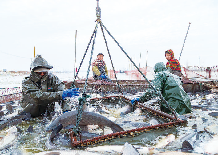 江苏创新网讯 昨日,淮安洪泽区西顺河镇水产养殖基地工人在捕捞成鱼。元旦过后,西顺河镇3万亩“四大家鱼”(青鱼、鲢鱼、草鱼和鳙鱼)养殖基地进入销售季,来自安徽、山东、河南等省市前来采购成鱼的车辆络绎不绝,基地一派繁忙。(图文/周太松)