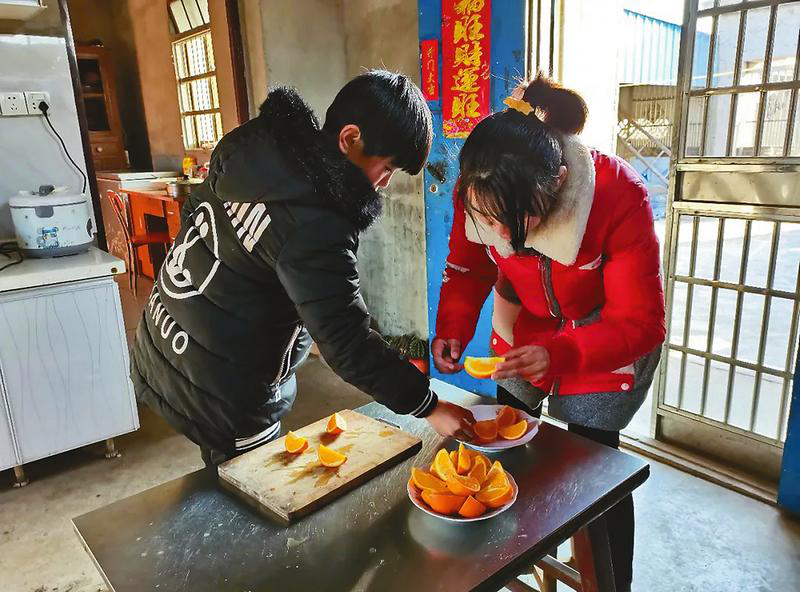 季蓉蓉姐弟倒茶、切水果,热情地招呼义工们。