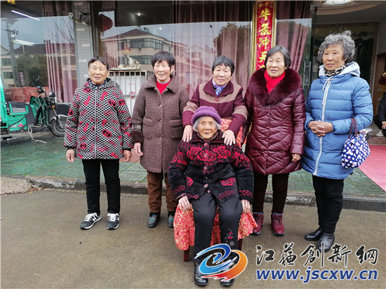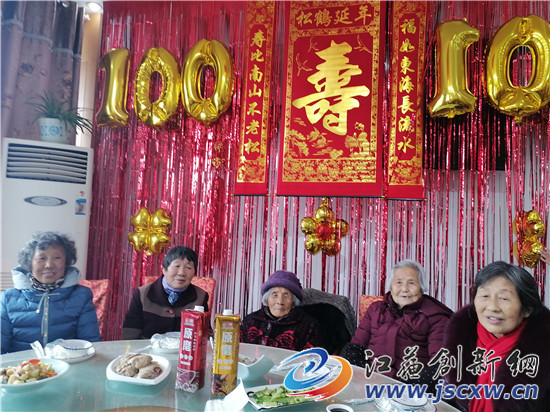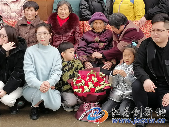 江苏创新网讯 (李国平)2月27日,是镇江宝堰上桥村凌习青的100岁生日,她的后辈们在这天从四面八方赶回家中,给这位家中的老寿星举办了热闹的生日宴。