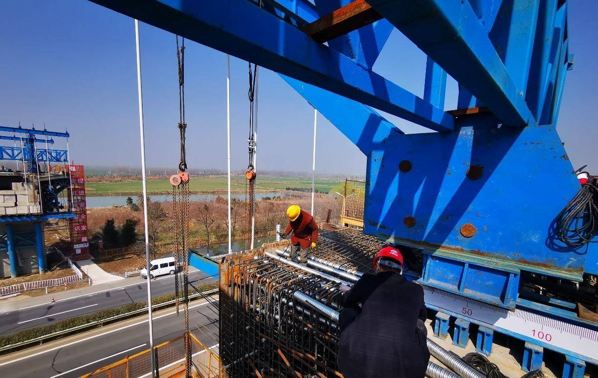 当记者来到宁淮城际铁路先开段施工现场时,工人师傅们正在15米高的作业面上进行连续梁节段施工。作为整个先开段施工的技术难点,施工单位中铁十九局抽调精干力量,加强施工管理,科学调配机械人力,为早日实现通车目标打下了坚实基础。“目前,我们正在247省道上方进行64米的连续梁施工,我们将采取全封闭挂篮施工,保证既有省道的通车安全。另外,我们还有一个128米的连续梁跨花河施工,它是全线中最长的连续梁,影响到整个工期,我们将全力以赴,确保今年完成128米的连续梁合拢。”中铁十九局宁淮先开段项目总工许松源说。