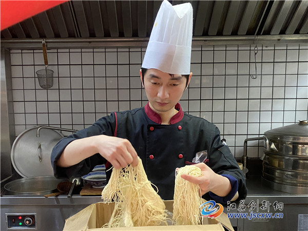 江苏创新网讯 从苏式焖肉面、胡椒猪肚鸡面、松茸花胶炖老鸡到潮州卤味拼盘,3月17日下午,在南京王府大街每天都有很多食客慕名来吃的彭庆福·苏食斋,原金陵饭店的大厨潘亚平精心准备了苏式面,让人领略到传统技艺的独特魅力。