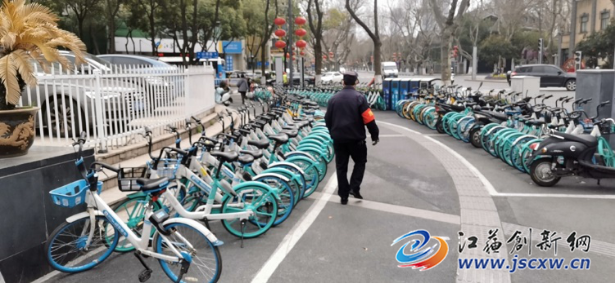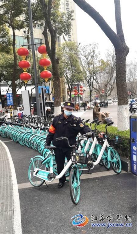 二是安排专人上街执勤。一方面劝导市民文明骑车,在指定位置停车;另一方面指定专人维护停车秩序,对一些不规范停放的车辆的进行整齐排放。