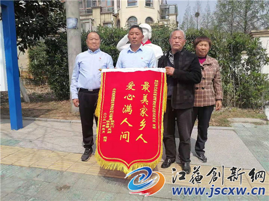 沈玮老人说,6年了,爱心人士陈正乐每年在节假日都会给我们买礼物,买新衣服,给红包,还请我们到丹徒新城的大饭店里吃团圆饭。今天除了沈玮老人和自己老伴,还有一个烈士的父母,他们是丹徒宝堰镇东后亭村在江西南昌牺牲的飞行员张国荣烈士的父亲张龙川和张龙川的老伴,两个烈士的父母都被陈正乐用专车接到了丹徒新城,主要将烈士父母与自己的“兴乐木林爱心团队”在今年清明节到来之际一起为烈士的塑像周围清理杂草,擦拭塑像上的灰尘,随了烈士父母今年的心愿。这天上午,张国荣烈士的父亲张龙川专门在儿子张国荣的雕像前,向陈正乐赠送了“最美家乡人,爱心在人间”的锦旗。