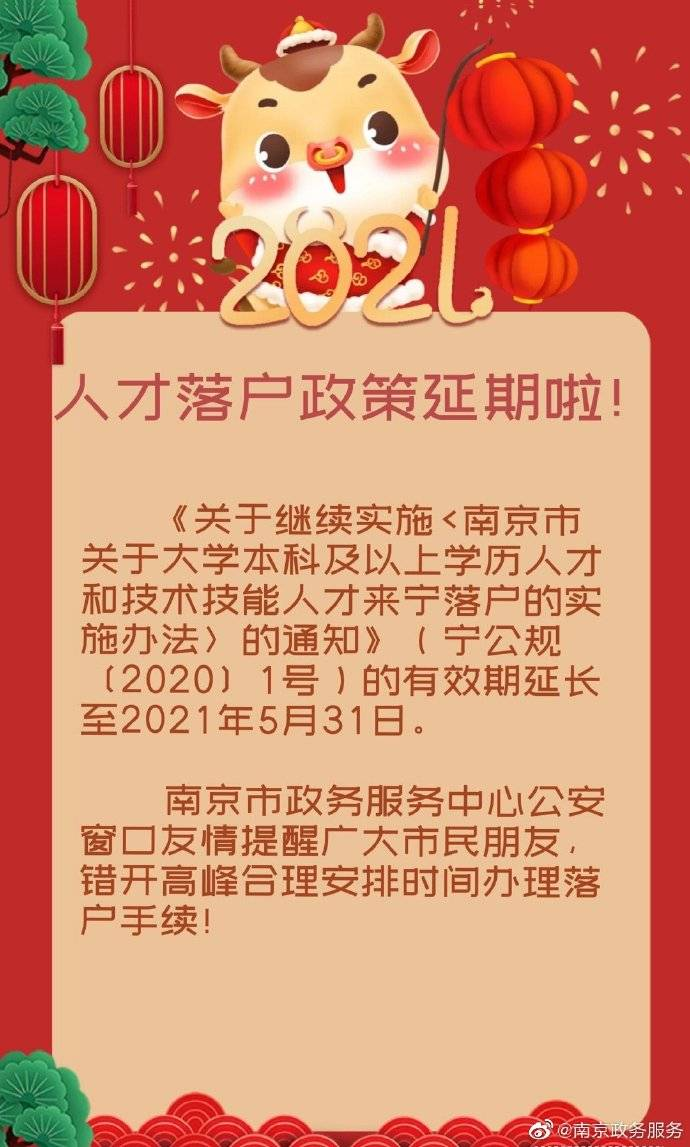 @南京政务服务消息,南京人才落户政策延期了。对此,南京市政务服务中心公安窗口提醒广大市民:人才落户政策延长至2021年5月31日,错开高峰合理安排时间落户手续!