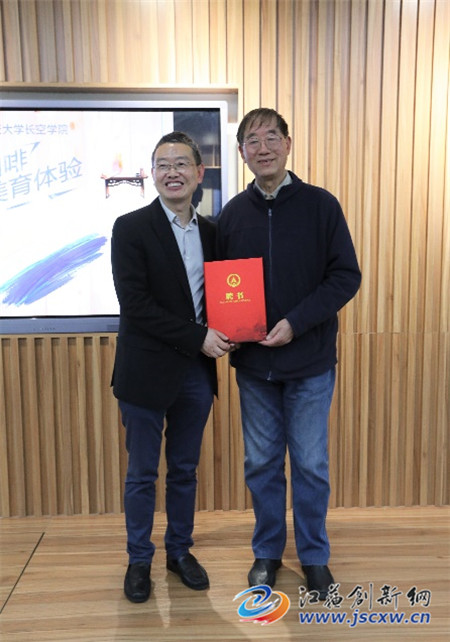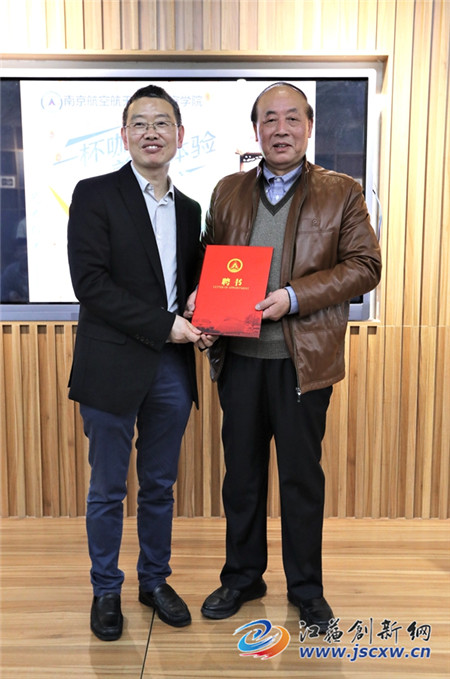 江苏创新网讯 南京航空航天大学长空学院聘请格致文化导师仪式,4月7下午在学院“一杯咖啡”美育体验室举行,仪式隆重而简朴。本次受聘的4位文化导师为南京益生书画院的著名书画家张永荣、姚德、彭连熙和费祖宁。