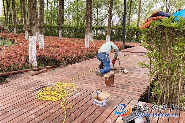 近期,句容市城管局园林管理中心以党史教育活动为契机,安排工作人员对公园的木栈道进行了全面的安全排查和维修。据统计,本次维修木栈道工期预计为45天,维修总面积将达2600平方,木栈道的修缮既保证了市民安全出行,又进一步提升了公园的景观形象。(图文/王佳佳)