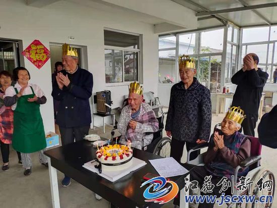 江苏创新网讯(李国平)5月12日,丹阳大吕村为民养老院双喜临门,一是养老院内四位高寿老人在五月迎来了生日。二是养老院同时邀请丹阳“云阳街道同乐京剧社”和“天天乐艺术协会”的票友们为庆祝党的100岁生日进行演出,大家在感党恩的同时共同庆祝这四位高寿老人的生日。