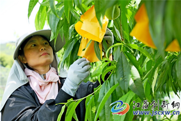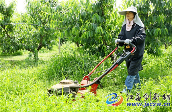 小满时节,阳光、水份充足,水蜜桃长势良好。在“多丰年”——时间的味道家庭农庄,美女王总正忙着用锄草机为桃园锄草,以及为日益长大的桃子套袋子。王总说,她的农庄坚持绿色环保,长期以来不用农药、不用化肥,给桃树施用的是有机肥。而为桃子套袋子,是为了止桃子在生长过程中防虫子和鸟类叮咬。在果园,摄影师们围着忙碌的果农,举着相机拍个不停。