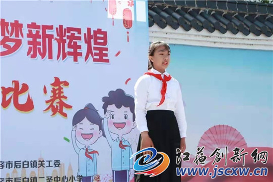 在活动现场,后白镇中心小学选送的老少同台《颂祖国变迁》节目,则把活动又一次地推向了高潮。
