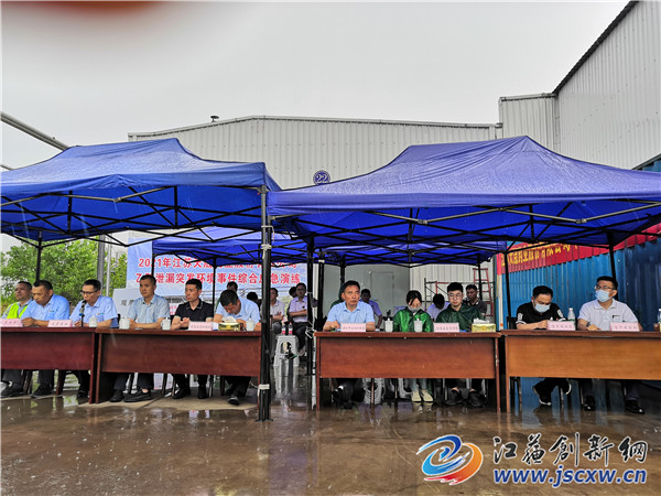 镇江市生态环境局执法局应急中心主要负责同志现场观摩并指导演练,句容生态环境局相关部门参与演练。