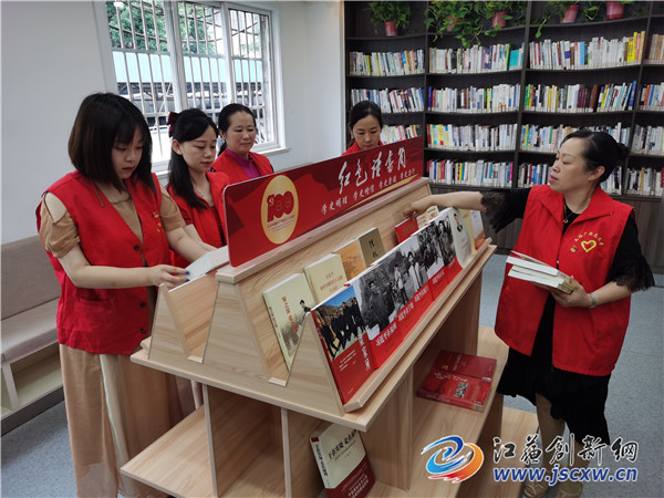 江苏创新网讯 为感悟红色文化魅力,传承红色基因,将党史学习教育融入日常工作、学习中,句容市图书馆开发区分馆特打造“红色图书角”,传播党的声音。近日,句容市图书馆党支部开展党员志愿服务,走进“红色图书角”,进行红色书籍流转服务。