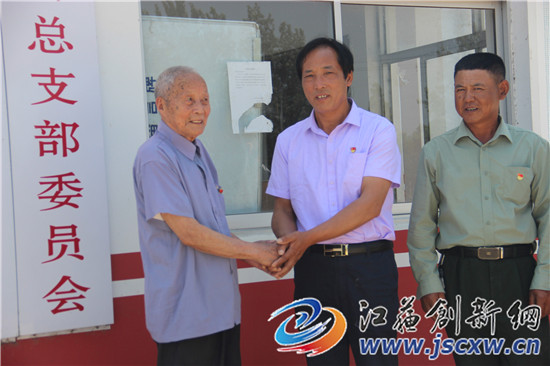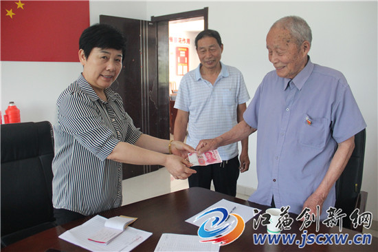 江苏创新网讯 6月22日上午10时许,句容市后白镇曹村91岁老党员谢万里,在儿子的陪同下,顶着烈日前往村党总支缴纳下半年党费。