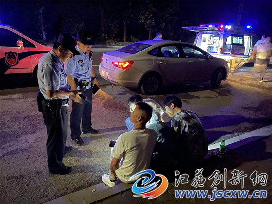 当日晚8点30分左右,句容城管队员受邀参加边城镇庆祝建党100周年文艺晚会演出结束返回句容市,途经五里墩路段时,发现有一位老人倒在快车道上。见此情况,城管队员快速靠边停车来到老人身边,仔细查看,老人手臂受伤,腿部流血,身体已经无法动弹。范海峰、周斌两位队员连忙上前扶起老人,在确认无生命危险时,就近将老人扶至路牙边坐下休息。