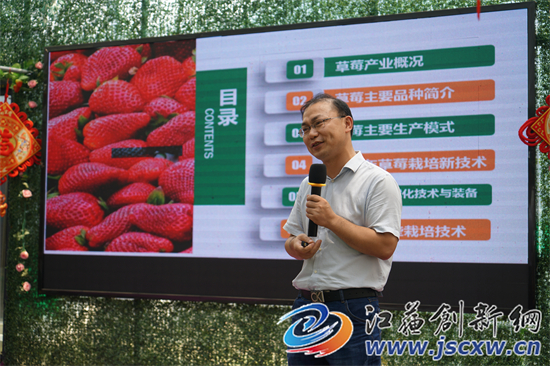 江苏创新网讯(毛妮妮 毕庆元 窦汉星) 7月7日,为了更好的落实“我为群众办实事”实践活动,镇江市农科院、句容市农业农村局、镇江市草莓协会等共同把草莓种植培训课堂搬到农场,在句容市白兔镇永丰农场举办了草莓专场培训会。来自句容市70多名草莓种植大户参加了现场培训。