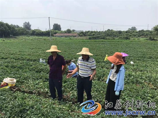 随后,吉沐祥研究员还深入农户田间,指导农户当前草莓育苗防病注意的要点,“炭疽病要重在预防,高温多雨用药要及时;旺长苗要用三唑类药剂适当控苗促壮,……”,顺着吉沐祥研究员所指草莓苗,部分旺长苗易发病,吉沐祥讲解控旺药种与方法。农户笪小华感叹道,“吉老师细心和耐心指导,使我收获不小,真得好好学习!”