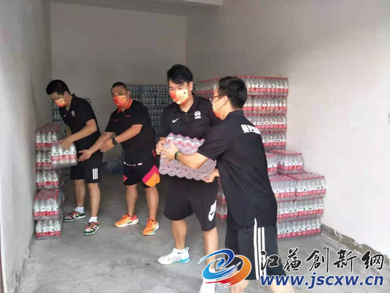 江苏创新网讯(翟延露) 近日,新冠疫情在周边又出现传播,全城疫情防控情势严峻。句容市体育企业“曼巴篮球”,在配合疫情防控要求、关停室内营业场所的同时,组织人员、资金,采购了200箱共计4800瓶矿泉水,捐助给奋斗在抗疫一线的工作人员。这是句容市首家为疫情防控进行捐赠的体育企业。
