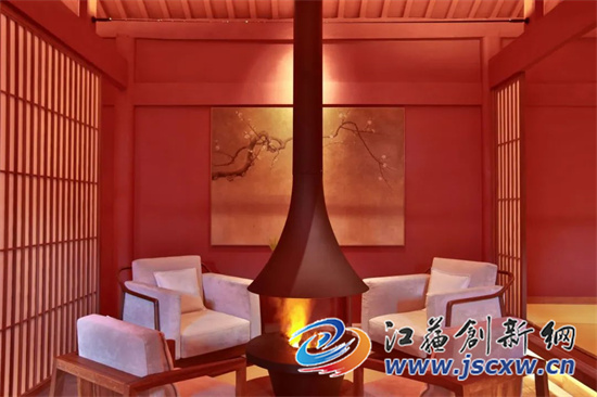 红坊以古典布局呈现代风格,类屏风的设计将大堂区隔为三个空间,宾客置身其中既能感受到古朴气息,又能保留自都市生活反璞的那一份适从感。中间的空间以篝火围合,构筑出温暖的氛围。右侧的空间采用了灵活的家具设计,茶桌的升起与放下赋予此处或品一口山间好茶,或静坐冥想参禅的复合型功能。