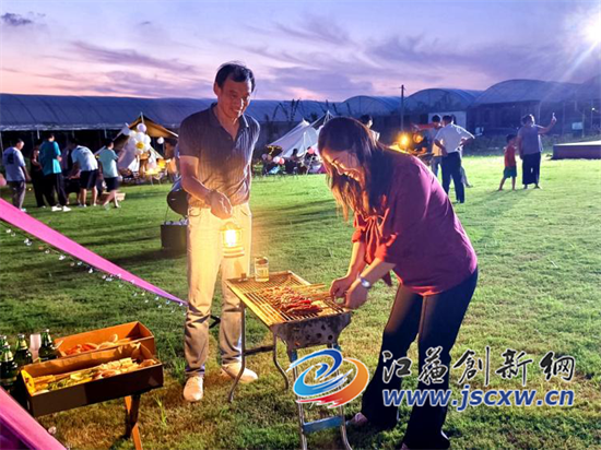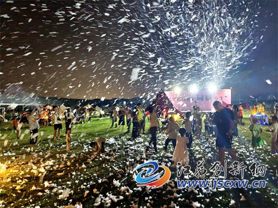江苏创新网讯(图文/朱旭先)8月8日,是农历24节气的立秋。南京人有立秋啃秋的习俗。傍晚,南京市八卦洲红杜鹃3000多平方米的露天大草坪上,聚集着200多位从南京各地汇集而来的市民和小朋友,他们在这里不仅能听音乐、看舞蹈,还能一边观焰火、玩雪花,一边吃烧烤喝啤酒,把啃秋活动演义得生动活泼、多姿多彩!