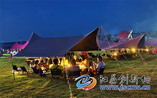 高燕燕总经理说,昨天晚上是甜野CAMP露营地在红杜鹃大草坪的首场活动。其目的在于测试场地音响、灯光照明,以及服务团队操练。不曾料到,消息未经正式发布便不径而走,南京科技馆80多人前来开展团建活动,更多的市民和青少年学生则自发结伴而来,15个大大小小的帐缝下聚集了200来人,可谓座无虚席。昨天恰逢立秋,大草坪上凉风习习,天空则布满了星星,大家欢聚在一起听音乐、观舞蹈、喝啤酒、吃烧烤,不亦乐乎。尤其是别开生面的人造雪花和各种焰火表演,把晚上的啃秋活动推向了高潮,大家随着音乐的节拍载歌载舞,3000多平方米的红杜鹃大草坪仿佛成了欢乐的海洋。