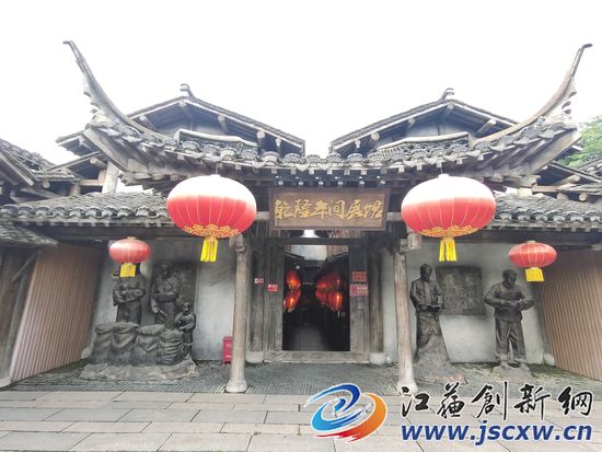 走进“乾隆年间”展馆,外面的市井喧嚣瞬间被隔离在外,仿佛误入了百年前的古街巷。“梨膏糖”“打铁铺”“纸伞铺”“八音坊”“茶楼”“酿酒坊”里面的桌椅橱柜,皆是从各处“淘”来的老物件,古装打扮的蜡像也栩栩如生。千华古村周经理说到:“在古戏台,每天都会有黄梅戏等传统戏曲演出,戏台两侧的非遗室外展区,展示了‘老虎鞋’‘南京云锦’‘剪纸’‘皮影’等非遗工艺产品,通过这样的氛围营造,将非遗项目与景点融为一体,让游客能够真正获得沉浸式体验。”