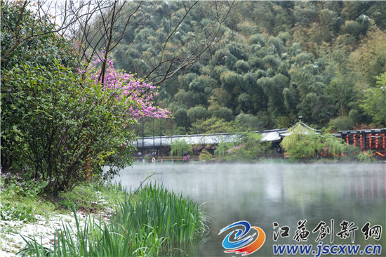 阳春三月,春雪与天目湖的翠竹、百花、山峦等巧妙而完美的结合在一起,更显风情万种,美丽妖娆,不少游客陶醉雪景之中。(文/卞梦玲 供图/史鹏)