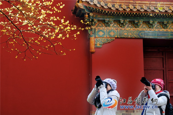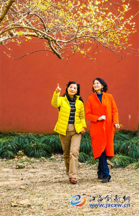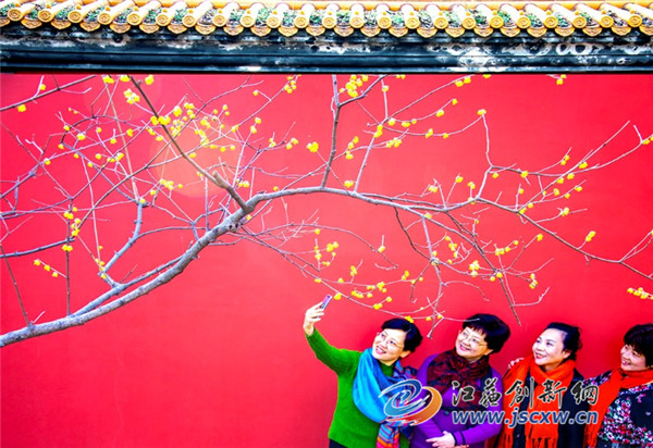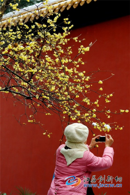 江苏创新网讯 南京城遍植腊梅,芳香四溢。寒冬时节百花凋零,唯有腊梅迎风斗雪,给人以花香。
