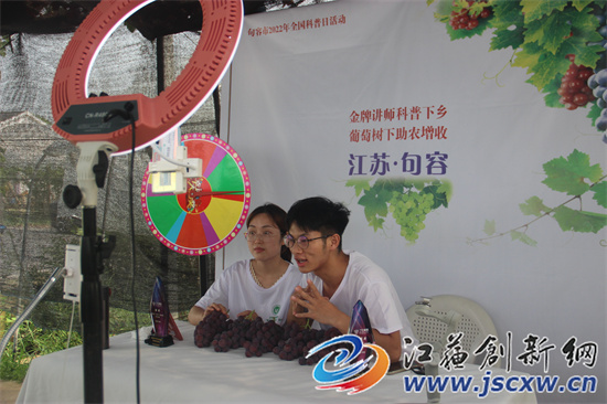 江苏创新网讯 近段时间是句容葡萄销售旺季,为帮助葡萄种植户进一步拓展销售渠道,增加销售方式。8月25日,句容市科协特聘科普金牌讲师张鸣峰,带领团队人员来到葡萄园,开展“金牌讲师科普下乡,葡萄树下助农增收”直播销售。