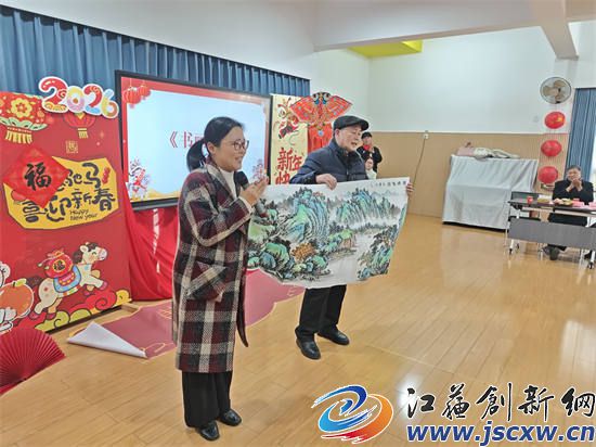 现场,周铁书画协会竺西书画院周正军院长向社区赠送了书画作品。