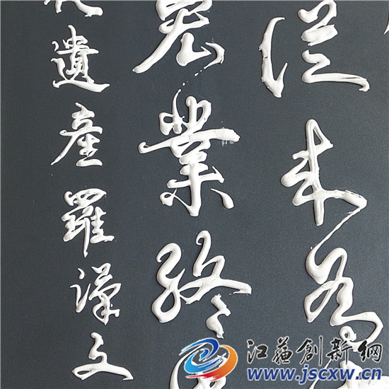 江苏创新网讯 不久前,一位盐城的书法家专程赶到常州奔牛向罗汉文学习非物质文化遗产立体字。这种立体书法,是罗汉文首创,使竹为笔,以浆代墨,不是通过模具或是雕刻,而是一笔一画写成凸出的立体字,字迹未干时成浆,晾干之后则变成了固体,坚硬牢固,凿刻不能动之分毫,风吹雨淋十年八年竟俨然如新。一时之间,很多书法家都对这种特殊的书法形式感到新奇并前来拜师学习。