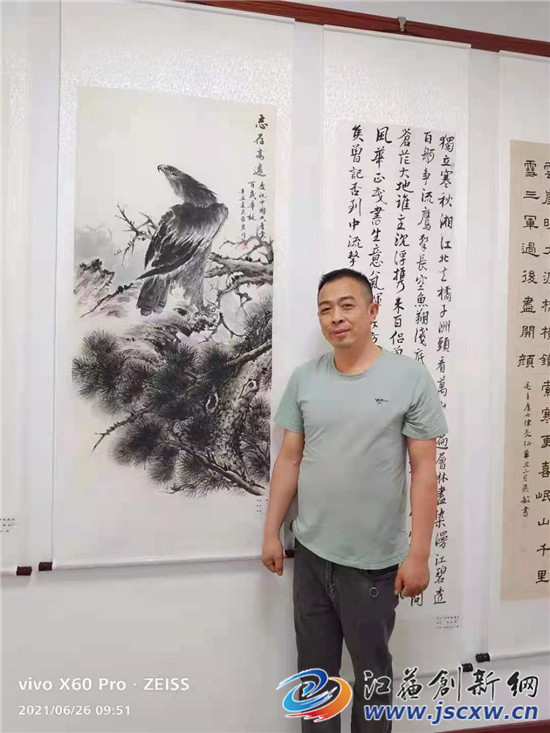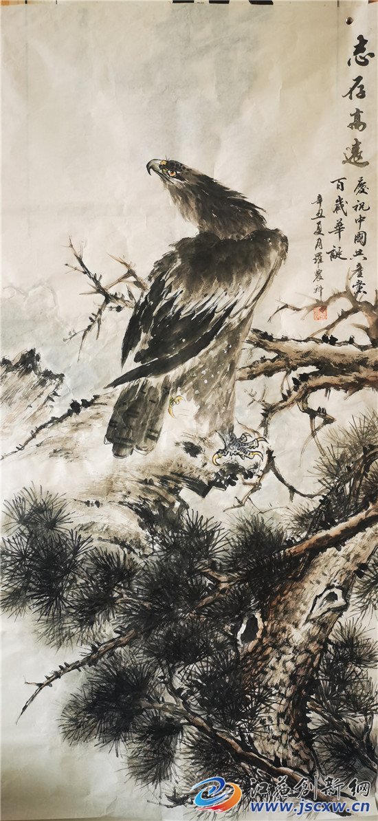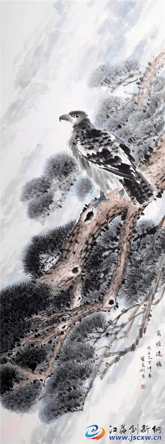 花鸟画中的物是画家的自我写照,是画家托物言志,借其抒情。观罗农科的花鸟图,多画雄鹰居高,白鹤倚松,灰鹭踏雪,雄鸡斗虫,不仅志存高远,意境幽深,还颇有自然趣味。尤其是他画中雄鹰的眼睛,并不像其它书画家描绘得凶狠傲气,反倒有一种温和宁静、眺望远方的开阔之感,罗农科也像是他画中的雄鹰一样,志存高远,心胸开阔,温和宁静,待人随和。(图文/毕庆元 蒋梦雨)